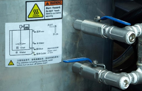 ❖ Glue tank can automatically glue in circulation, mix and constantly heat and filter. With fast-shift valve, it will take only 3-5 minutes for the user to clean the gluing cylinder.